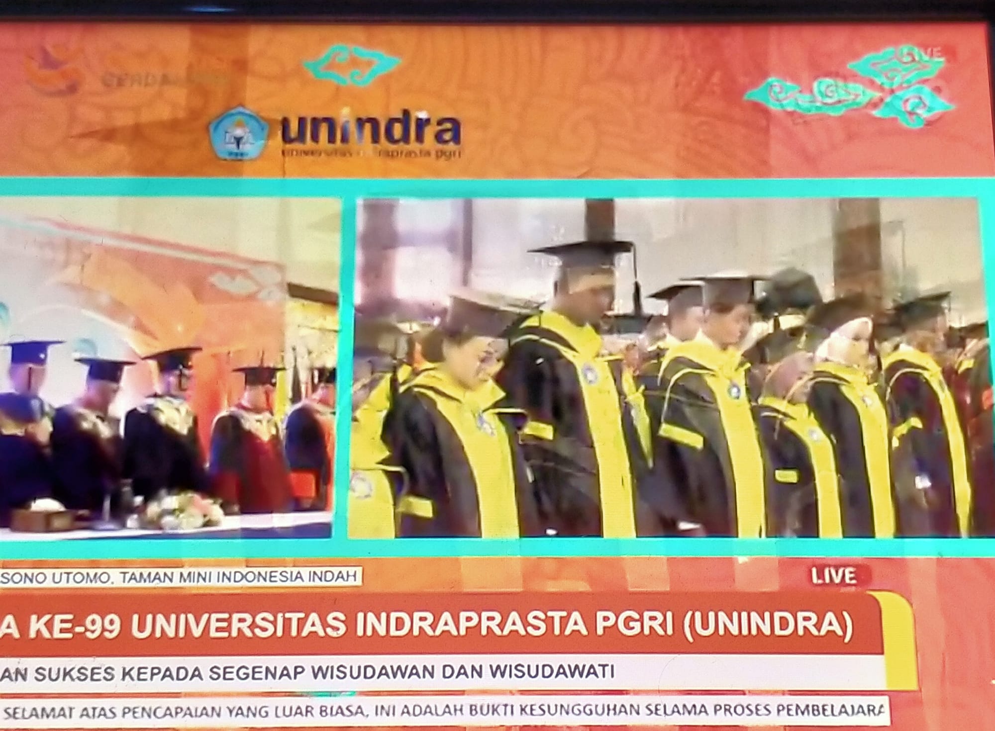 Spektroom - Sidang terbuka dengan acara tunggal wisuda sarjana dan Pascasarjana ke 99 Unindra secara resmi dibuka oleh Rektor Unindra Prof. Sumaryoto yang berlangsung di gedung Sasono Utomo TMII Selasa 7/10/25. Wisuda diikuti 1.150 wisudawan dari berbagai fakultas yang ada di lembaga pendidikan tersebut.