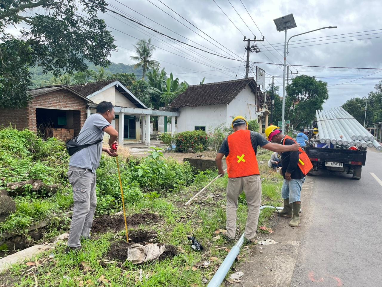 “Pekerjaan pemasangan dimulai dari Desa Pondokrejo sebagai lokasi pertama. Setiap tiang PJU dipasang dengan jarak 50 meter antar titik, sehingga total jangkauan penerangan mencapai 1,75 kilometer. Setiap tiang memiliki kedalaman galian sekitar 1 meter dan dilengkapi pondasi kokoh agar tetap stabil dan tahan lama,” ungkapnya