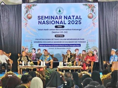 Gubernur Kalimantan Tengah Agustiar Sabran, yang diwakili Kepala Dinas Perhubungan Provinsi Kalimantan Tengah Yulindra Dedy, secara resmi membuka Seminar Natal Nasional Tahun 2025 di Gedung Serba Guna Paroki Santa Maria Palangka Raya, Jumat (12/12/2025). Seminar ini mengangkat subtema “Falsafah Huma Betang dalam Membangun dan Membina Keluarga Mandiri di Kalimantan Tengah.”