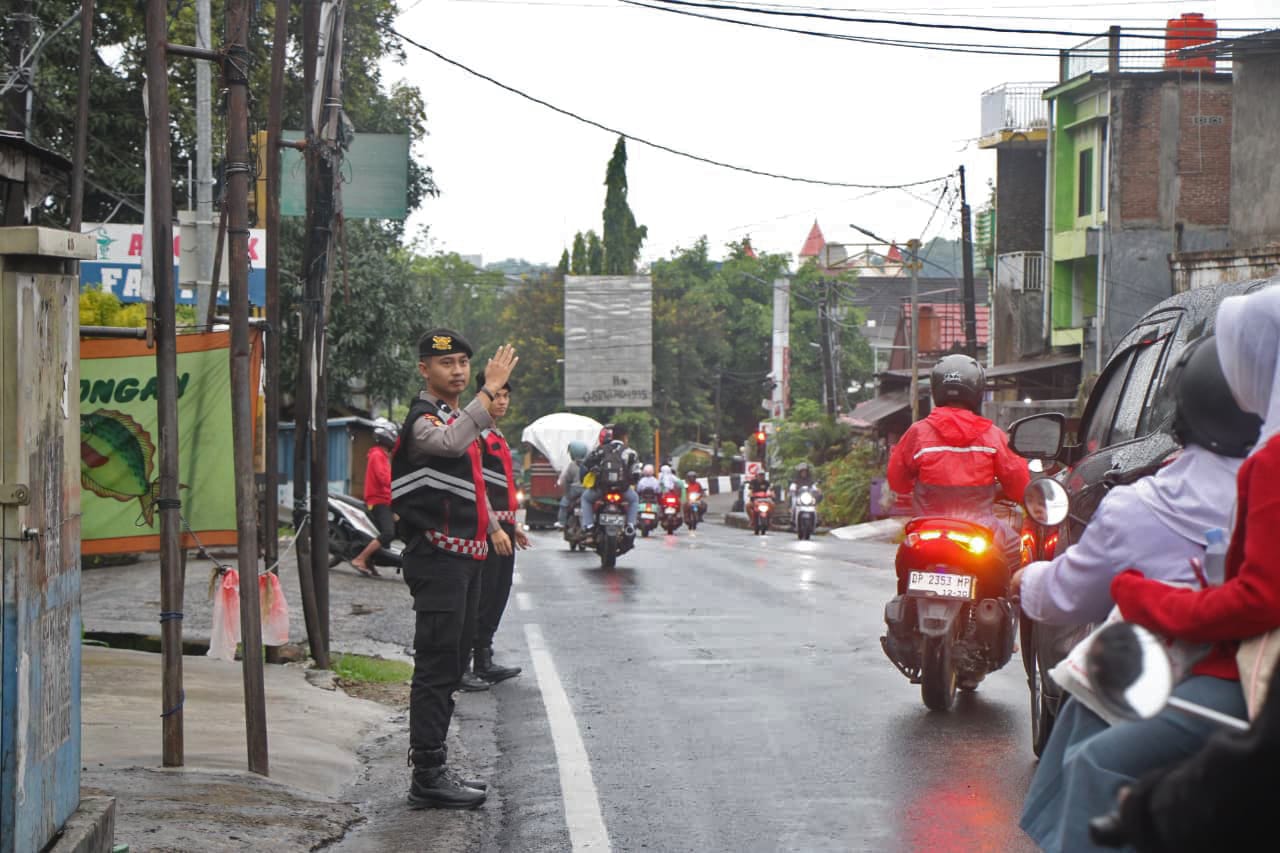 Personel ditempatkan di titik-titik strategis guna mengantisipasi kepadatan arus kendaraan dan potensi kecelakaan lalu lintas.