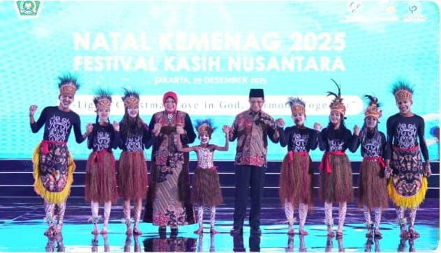Spektroom - Kementerian Agama untuk pertama kalinya menggelar perayaan Natal terpadu bagi ASN Kristen dan Katolik melalui Festival Kasih Nusantara 2025 di Sasana Kriya TMII, Jakarta Senin (29/12/2025). Kegiatan ini menjadi puncak rangkaian Natal sekaligus penegasan komitmen Kemenag dalam merawat kerukunan dan menghadirkan agama sebagai kekuatan kemanusiaan yang nyata.