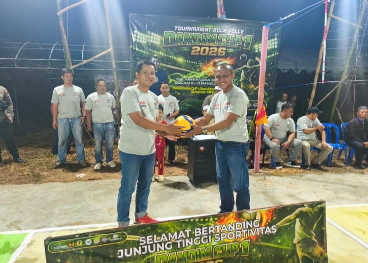 Barabai, Spektroom – Mewakili Dandim 1002/Hulu Sungai Tengah Letkol Inf Ardiansyah Okta Putra Siregar, Danramil 1002-02/Batang Alai Utara Kapten Czi Obet Subagiyo didampingi Camat Batang Alai Utara dan Kapolsek Batang Alai Utara, membuka Turnamen Bola Voli Dandim Cup I Tahun 2026 dalam rangka menyambut Bulan Suci Ramadhan 1447 Hijriah.