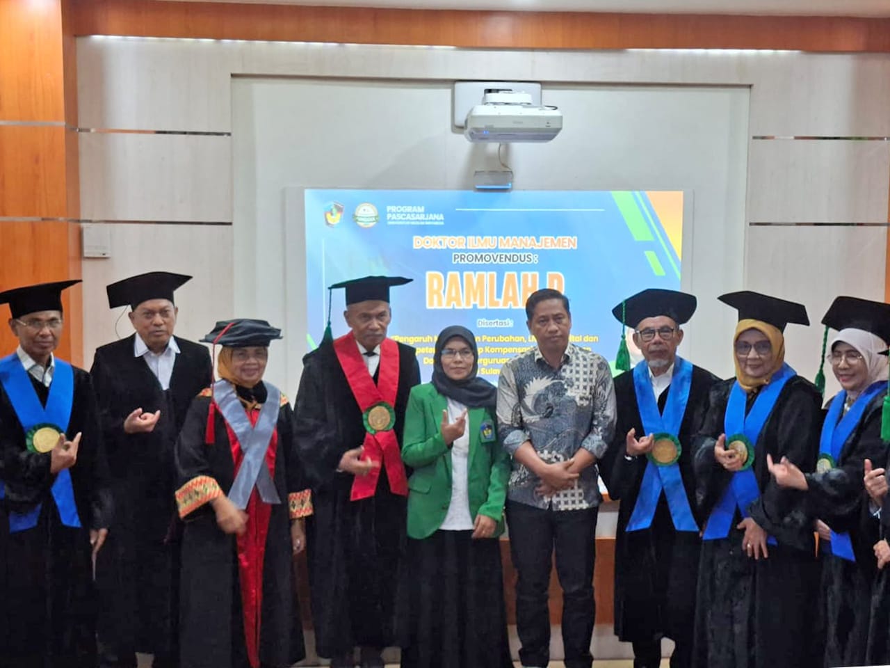 Hal ini diungkapkan Ramlah. P. di dalam disertasinya tentang Pengaruh Manajemen Perubahan Literasi Digital dan Kompetensi Terhadap Kompensasi dan Komitmen Dosen Pada Perguruan Tinggi Swasta di Provinsi Sulawesi Selatan, ketika mengikuti uji kompetensi untuk meraih gelar Doktor Ilmu Managemen pada program Pasca Sarjana PPS UMI Makassar, Senin 29 September 2025. Gelar uji kompetensi dipimpin Direktur Program Pasca Sarjana PPS UMI Makassar Prof. Dr. H. La Ode Husen, SH., M.Hum. dengan penyanggah dari internal UMI dan eksternal UNHAS Makassar.