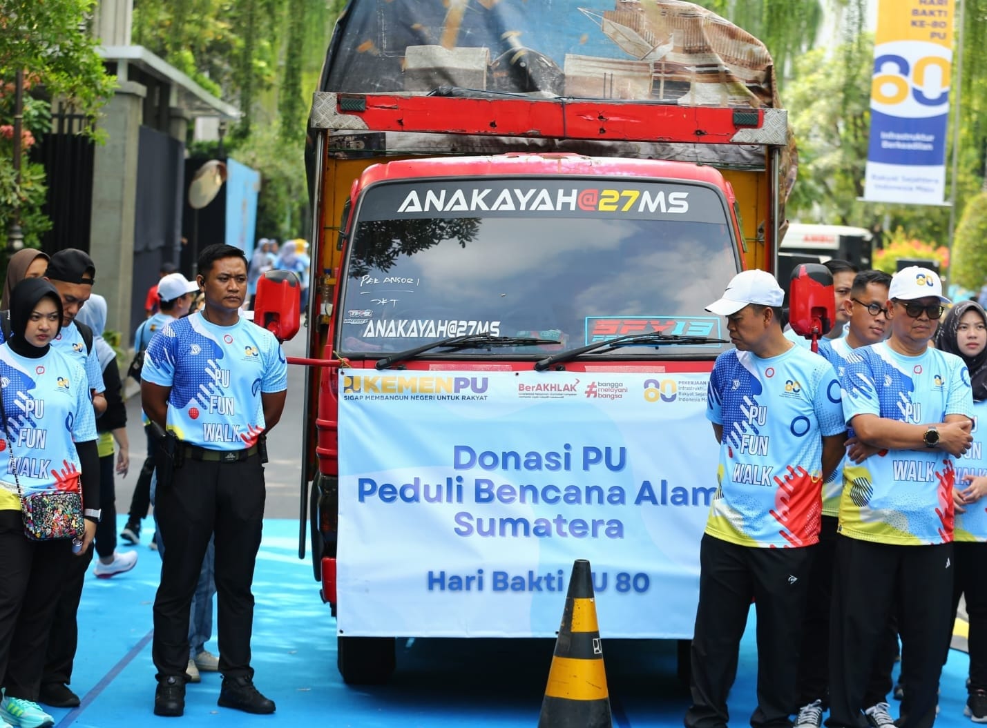 "Saya sampaikan bahwa semangat Hari Bakti PU tahun ini kita arahkan juga menjadi kepedulian bagi saudara-saudara kita yang terdampak di Aceh, Sumbar, dan Sumut. Donasi sebesar Rp924 juta yang terkumpul dari pegawai kami yang kemudian dilengkapi oleh DWP menjadi Rp1 miliar. Seluruhnya disalurkan untuk masyarakat di lokasi bencana,”kata Menteri Dody. FunRun ,Minggu ( 30/11/2025).