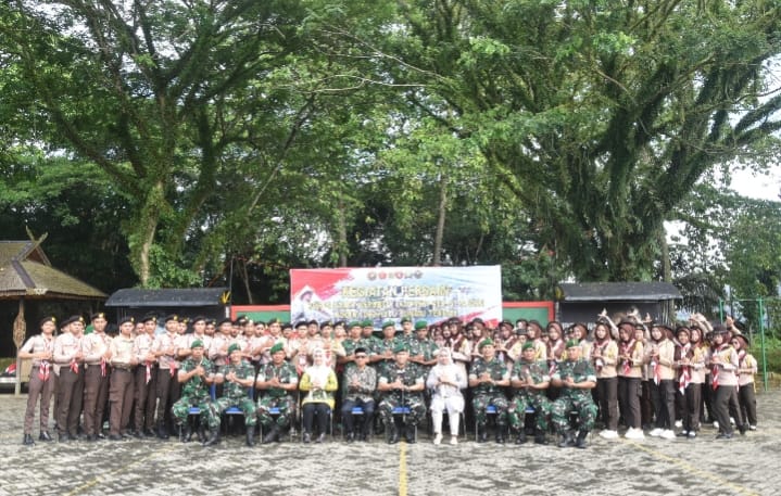 “Kegiatan perkemahan ini bertujuan menanamkan nilai-nilai Pancasila, UUD 1945, NKRI, dan Bhinneka Tunggal Ika, serta membangun mentalitas pemimpin muda yang berintegritas. Materi yang diberikan meliputi pelatihan fisik terstruktur, latihan baris-berbaris, kepemimpinan, wawasan kebangsaan, sejarah perjuangan, dan keterampilan dasar Bela Negara,” tegas Dandim.