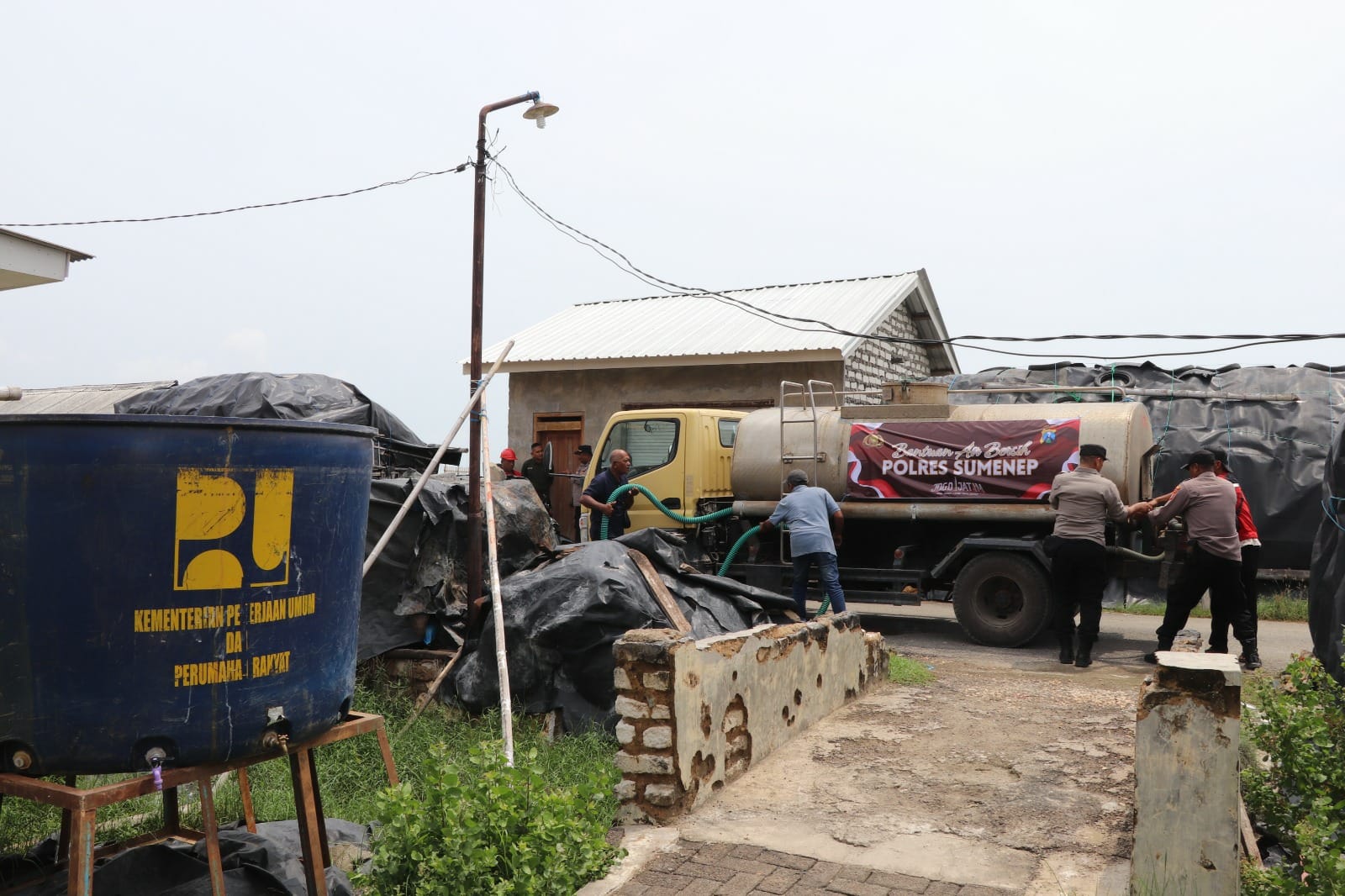 Polres Sumenep Salurkan Bantuan Air Bersih untuk Warga Desa Pinggirpapas Kecamatan Kalianget Sumenep