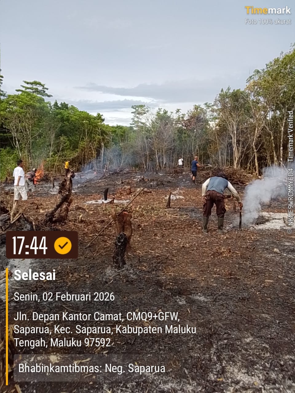Dalam penyiapan lahan, personil Polsek Saparua melakukan penebangan pohon liar dan rerumputan pada lahan kosong milik salah satu personil Polsek Saparua BRIPKA F. Souisa seluas 2 hektare.