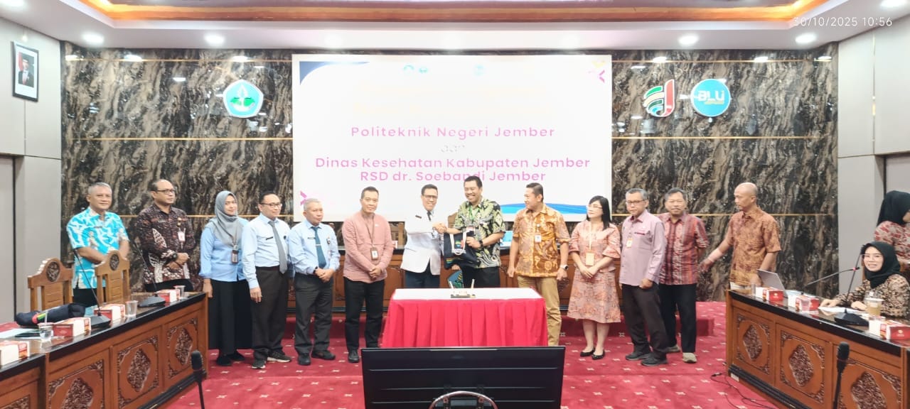 Dalam kesempatan tersebut, hadir jajaran pimpinan dari ketiga institusi, yakni perwakilan Politeknik Negeri Jember, Dinas Kesehatan Kabupaten Jember, dan RSD dr. Soebandi Jember.
