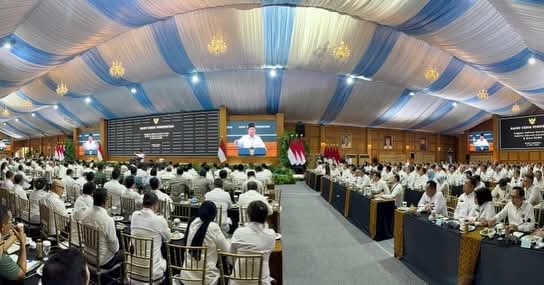 Jakarta-Spektroom : Presiden Prabowo Subianto menegaskan dua kebijakan strategis pemerintah dalam menghadapi ketidakpastian global dan kenaikan harga avtur dunia dalam Rapat Kerja Pemerintah bersama anggota Kabinet Merah Putih, seluruh pejabat Eselon I kementerian/lembaga, serta Direktur Utama BUMN di kompleks Istana Kepresidenan Jakarta, Rabu (08/04/2026).