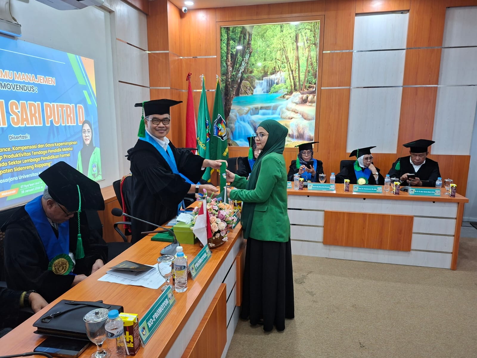 Hal itu diungkapkan Promovenda A. Kartini Sari Putri D. dalam Disertasinya tentang pengaruh Work-Life Balance, kompensasi dan gaya kepemimpinan perempuan terhadap produktivitas tenaga pendidik melalui kepuasan kerja pada sektor lembaga pendidikan formal Kabupaten Sidenreng Rappang, pada Uji Kompetensi untuk meraih gelar Doktor ilmu managemen pada program pascasarjana UMI Makassar, Senin (26/1/2026), di Aula PPJ Pasca Urip Sumoharjo Makassar.