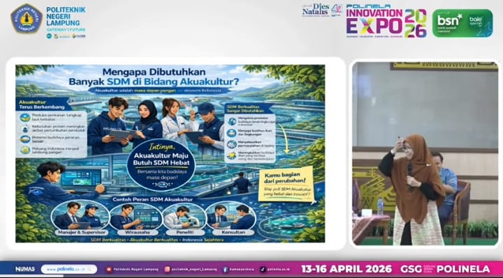 Hal itu dikemukakan Dosen Jurusan Perikanan dan Kelautan Politeknik Negri Lampung Nur Indariyanti pada rangkaian kegiatan Seminar Polinela Innovation Expo 2026 bertajuk Inovasi dan Teknologi Perikanan dan Kelautan, Menuju Industri Perikanan Tangguh dan Berkelanjutan, bertempat di Gedung Serba Guna (GSG) Polinela, di Bandarlampung, Kamis (16/4/2026).