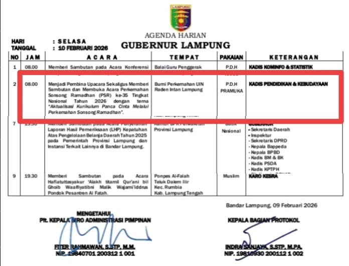Spektroom - Kepala Dinas Pendidikan dan Kebudayaan (Disdikbud) Provinsi Lampung Thomas Amirico, S.STP., M.H membuka kegiatan Perkemahan Songsong Ramadhan ke-35 Tahun 2026 pada Selasa (10/2/2026) di Bumi Perkemahan UIN Raden Intan Lampung.