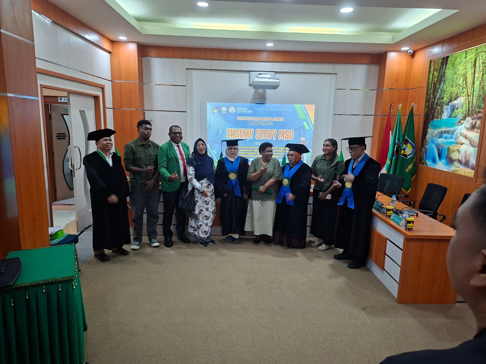 Ensemy Stevy Mso mengulas disertasinya tentang Pengaruh kompetensi, motivasi dan komitmen organisasi terhadap implementasi sistim informasi pemerintah daerah dan kinerja pengelola keuangan pada Pemerintah Kabupaten Maybrat Provinsi Papua Barat Daya.