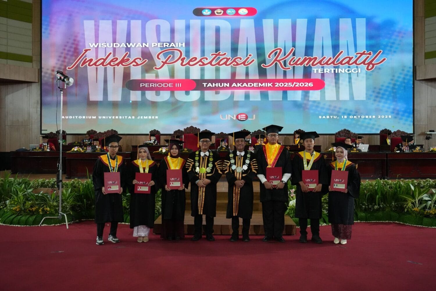 Selain Farrel, Universitas Jember juga memberikan penghargaan kepada lulusan terbaik dari setiap jenjang. Mereka adalah bukti nyata dari dedikasi dan keunggulan akademik. Dari jenjang Doktor (S3), predikat lulusan terbaik diraih oleh Dr. Wahyu Lestari, S.Pd., M.Pd. dari Program Studi S3 Pendidikan Matematika dengan IPK membanggakan 3,93 dan masa studi 2 tahun 9 bulan 27 hari.