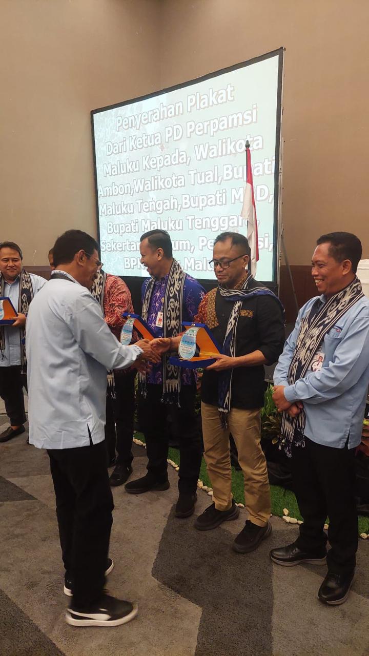 Pemerintah Provinsi Maluku juga menyerahkan plakat penghargaan kepada Sekretaris Umum PERPAMSI Pusat, Bapak H. Rhino Gusniawan, ST, MM, atas dedikasi dan kontribusinya dalam mendorong kemajuan sektor air minum di daerah. Acara Rakerda tersebut ditutup dengan sesi foto Bersama. (Yan/ editor Pelis)