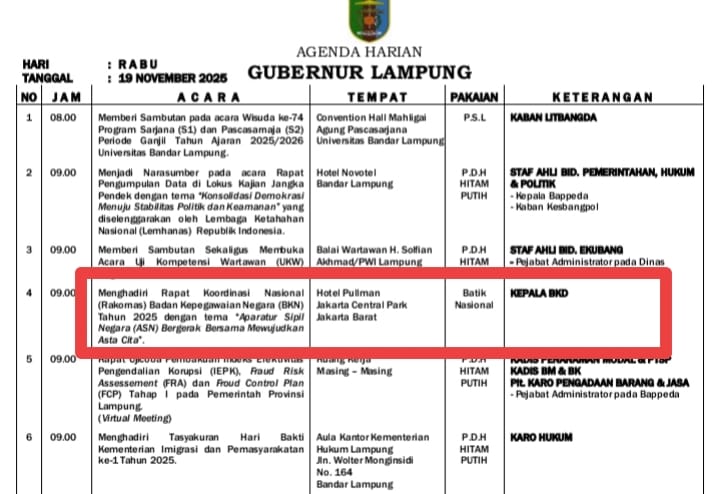 Spektroom - Kepala Badan Kepegawaian Daerah (BKD) Provinsi Lampung Rendi Riswandi, menghadiri Rapat Koordinasi Nasional (Rakornas) Badan Kepegawaian Negara (BKN) Tahun 2025, di kawasan Jakarta Central Park Jakarta Barat, Rabu (19/11/2025).