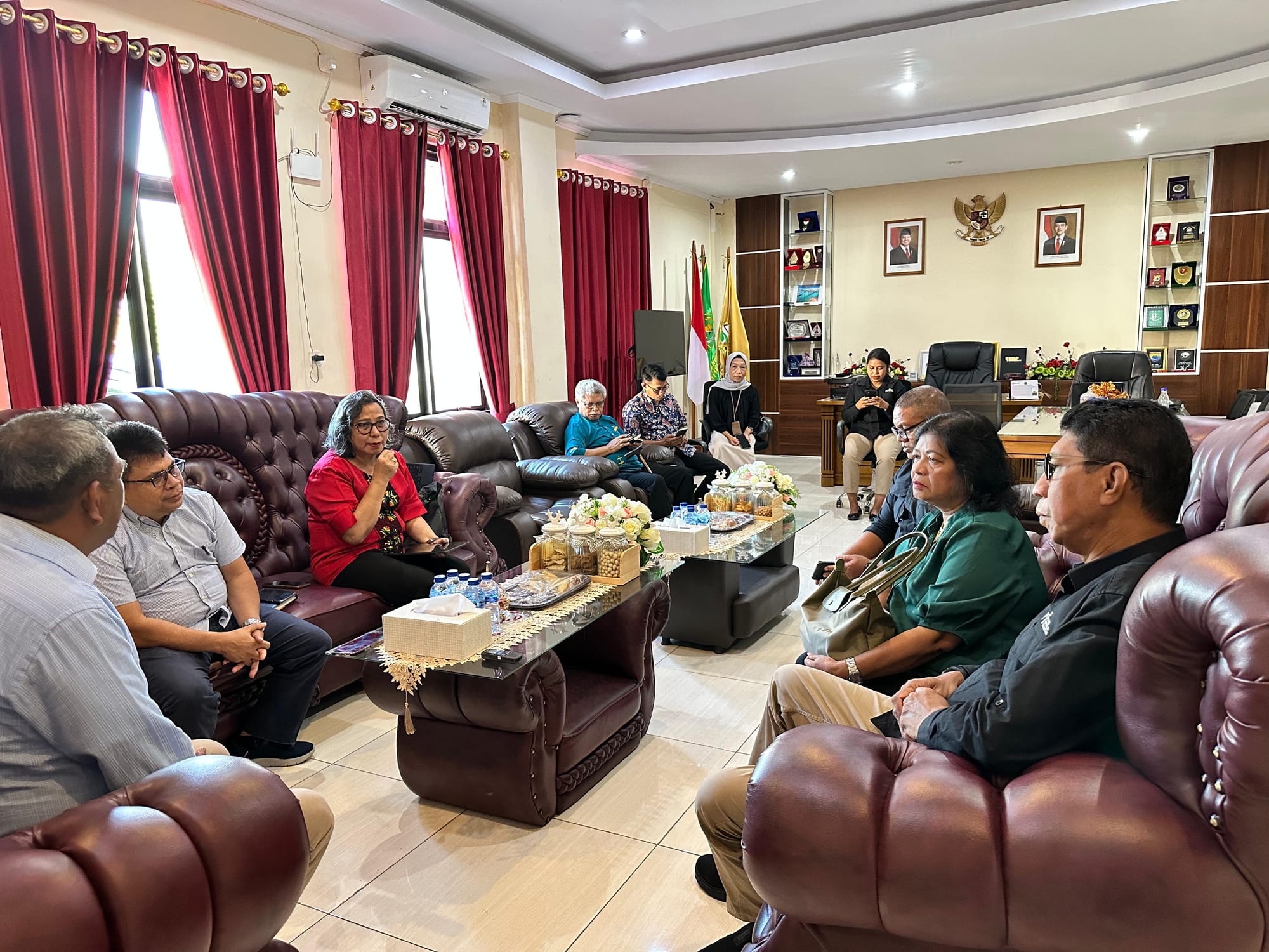 Kunjungan itu diterima langsung Rektor IAKN Ambon, Yance Zadrak Rumahuru, bersama jajaran pimpinan kampus di Gedung Pascasarjana IAKN Ambon. Pertemuan berlangsung dalam suasana terbuka dengan pembahasan penyebaran informasi pendidikan, promosi kegiatan akademik, hingga keterlibatan mahasiswa dalam produksi siaran.