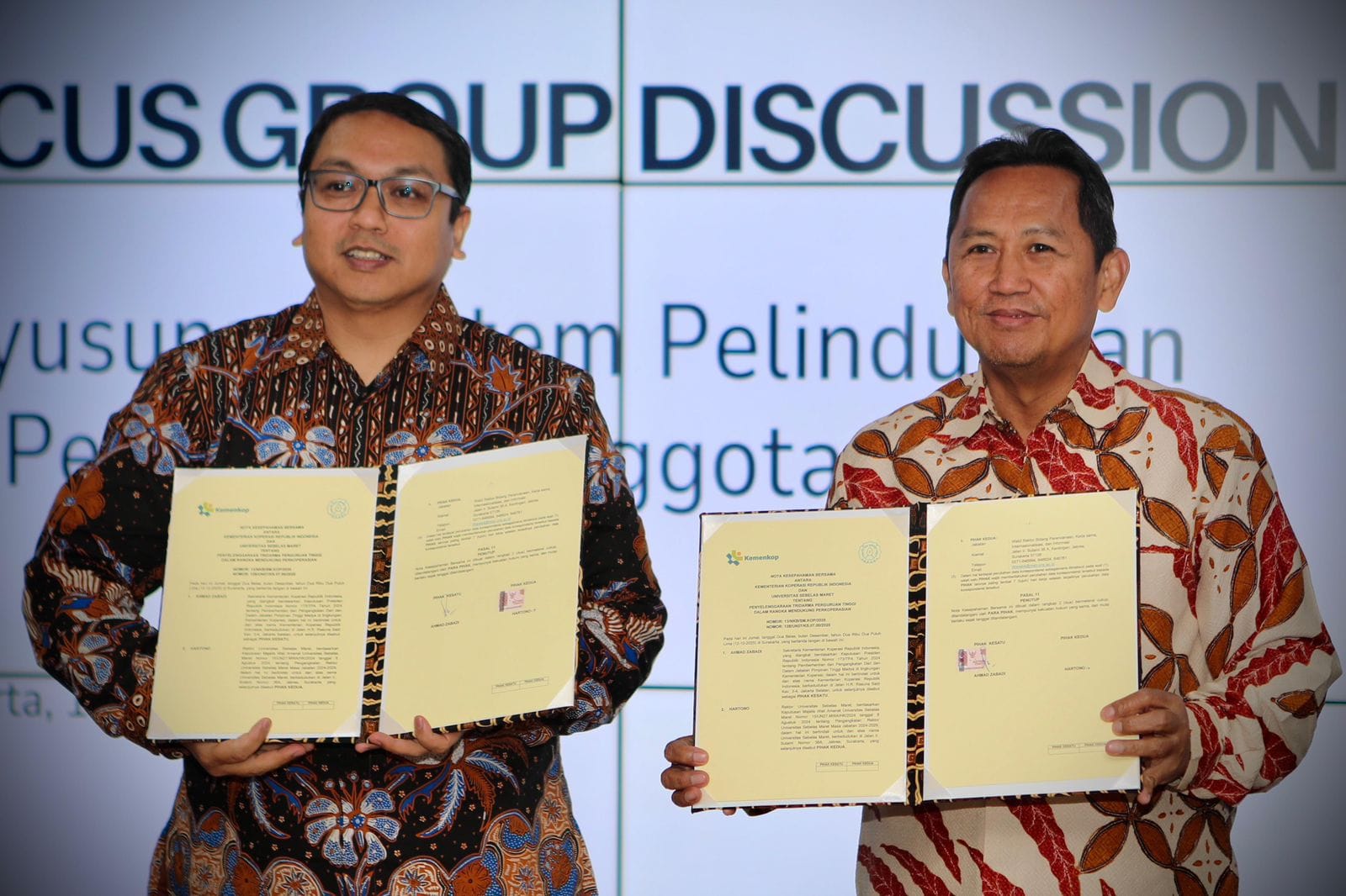 Zabadi menambahkan konteks kerja sama antara Kementerian Koperasi dengan Universitas Sebelas Maret menjadi sangat strategis. “Melalui MoU ini, UNS berperan dalam mendukung pelaksanaan program Koperasi Desa/Kelurahan Merah Putih melalui berbagai kegiatan yang dapat mengafirmasi berbagai program yang telah dilaksanakan oleh Kementerian Koperasi.
