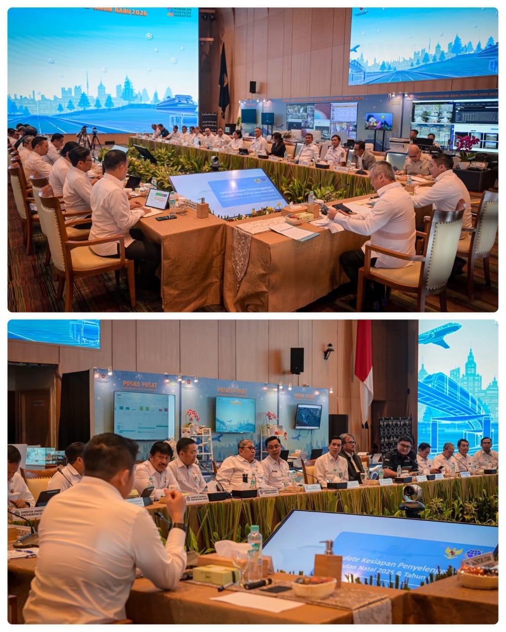 Spektroom - Senin pagi (22/12/2025), Seskab Teddy Indra Wijaya berdiskusi dengan jajaran pimpinan Kemenhub dan Dirut BUMN sektor transportasi di Posko Pusat Pemantauan Angkutan Natal dan Tahun Baru di Kementerian Perhubungan.