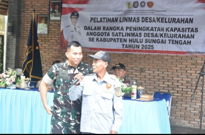 Spektroom — Upaya meningkatkan kesiapsiagaan dan kualitas Anggota Satuan Perlindungan Masyarakat (Satlinmas) kembali digaungkan di Kabupaten Hulu Sungai Tengah. Bertempat di Cafe Rezstwo, Desa Sungai Rangas, Kecamatan Labuan Amas Selatan, Kabupaten Hulu Sungai Tengah, Kalsel, Kamis (27/11/2025), puluhan Anggota Satlinmas dari tiga Kecamatan Labuan Amas Selatan, Labuan Amas Utara, dan Haruyan berkumpul mengikuti Pelatihan Linmas Desa/Kelurahan yang menghadirkan Komandan Kodim 1002/HST, Letkol Inf Ardiansyah Okta Putra Siregar, sebagai narasumber utama.