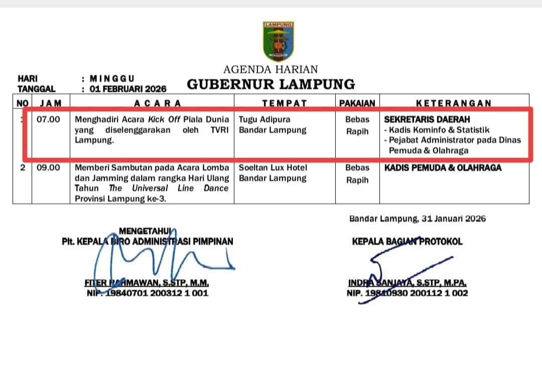 Hal itu dikatakan Sekretaris Daerah Provinsi Lampung Marindo Kurniawan pada Kick Off Siaran Piala Dunia 2026 yang diselenggarakan oleh TVRI Lampung di Tugu Adipura, BandarLampung, Minggu Pagi (1/2/2026).