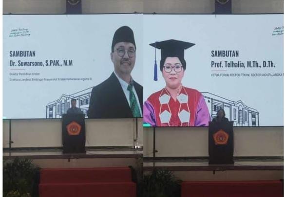 Pada kesempatan itu juga, Rektor IAKN Palangka Raya, Prof. Telhalia, M.Th., D.Th., yang juga menjabat sebagai Ketua Forum Rektor PTKKN, menyampaikan apresiasi atas kepercayaan Ditjen Bimas Kristen dan IAKN Tarutung sehingga Palangka Raya dipercaya menjadi lokasi launching nasional.