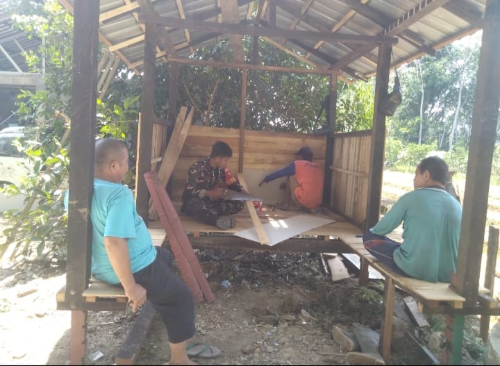 Semangat Gotong Royong Warga Aluan Mati dan Babinsa Hidupkan Kembali Pos Kamling