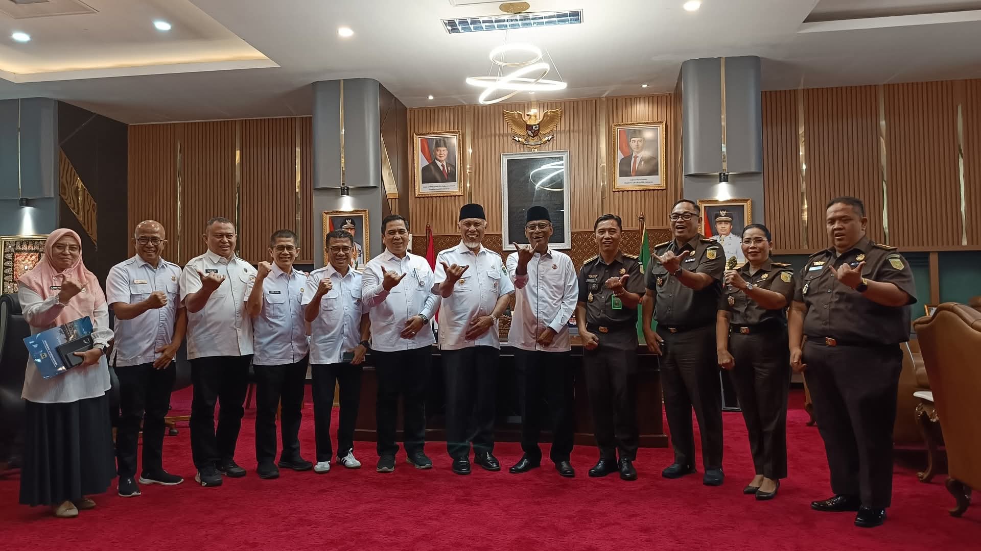 Dalam pertemuan itu, Gubernur Mahyeldi didampingi sejumlah pejabat Pemprov Sumbar, di antaranya Asisten Pemerintahan dan Kesra Ahmad Zakri, Asisten Perekonomian dan Pembangunan Adib Alfikri, Inspektur Andri Yulika, Kepala Kesbangpol Mursalim, Plt. Kabiro Adpim Dirse Novera, serta Kabiro Umum Edi Dharma.