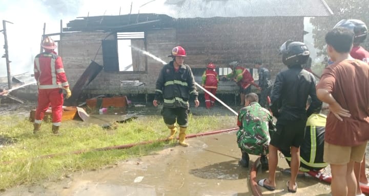 Sinergi Babinsa, Damkar, dan Warga Padamkan Api di Banua Jingah