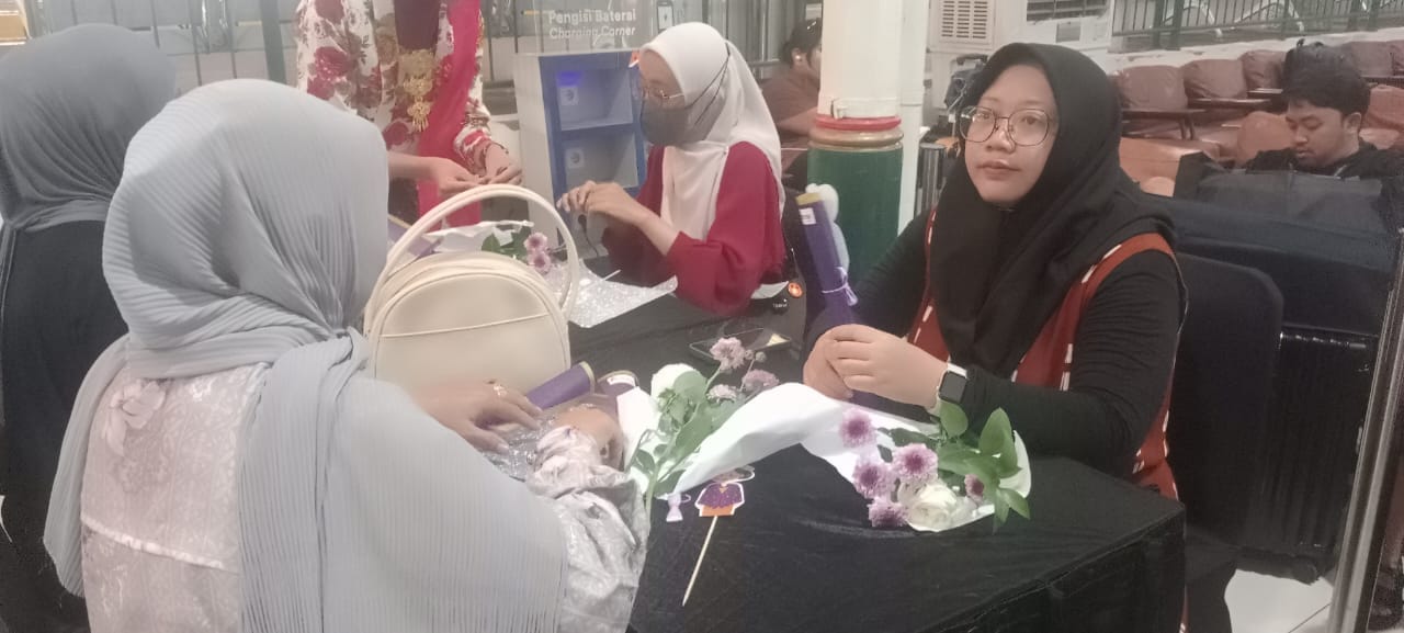 Di sudut lain, kegiatan merangkai bunga menjadi ruang ekspresi yang menyenangkan. Tawa ringan dan obrolan hangat mengalir, menghadirkan sisi humanis dari sebuah perjalanan yang biasanya serba cepat.