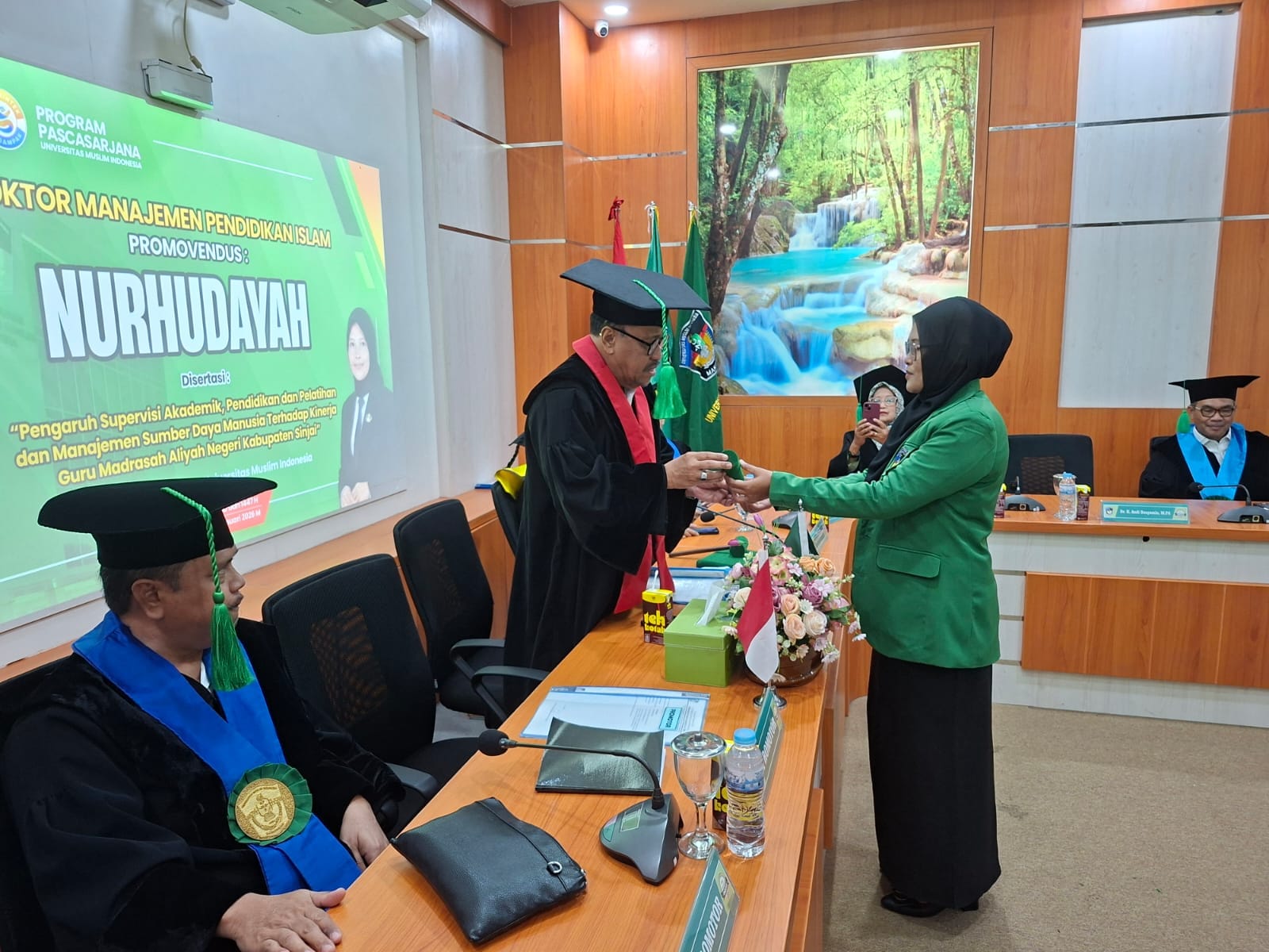 Sidang Senat terbuka gelar Promosi Doktor Nurhudayah, dipimpin Rektor UMI Makassar, Prof. Dr. H. Hambali Thalib, SH., MH dengan penguji Dr. Hj. Rosmiati, M.Pd., Dr. Ahmad Hakim, M.A., Prof. Dr. H. Baso Amang, S.E., MSi, Prof. Dr. Aris Munandar., Prof. Dr. Ir. Andi Tamsil, MS.