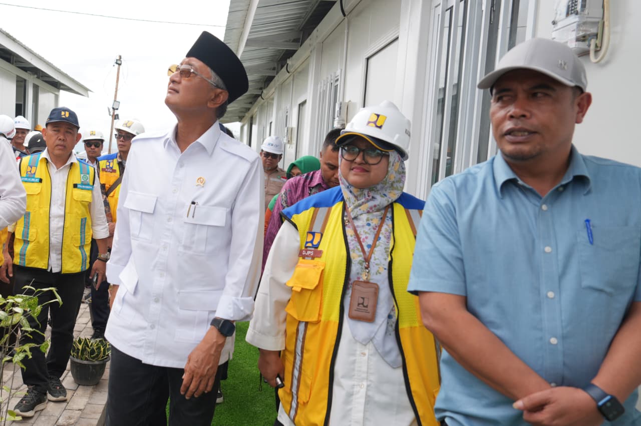 Menteri Dody menyampaikan bahwa progres pembangunan Huntara Modular masih berjalan sesuai dengan jadwal yang telah ditetapkan. “Progresnya masih sesuai schedule. Insya Allah minggu pertama Ramadan ini bisa selesai total untuk 202 KK. Lokasi ini luasnya sekitar 3 hektare, dan sebagian besar akan kita manfaatkan sebagai ruang terbuka hijau, ada tempat bermain, tempat ibadah, dan fasilitas publik lainnya,” ujar Menteri Dody.