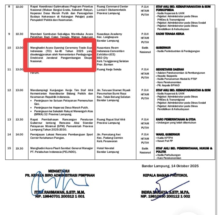 Spektroom - Gubernur Lampung Rahmat Mirzani Djauzal menghadiri Opening Ceremony Trade Expo Indonesia (TEI) Ke-40 Tahun 2025 yang diselenggarakan oleh Kementerian Perdagangan, di Nusantara Room Indonesia Convention Exibition (ICE) BSD City Tanggerang Selatan Prov. Banten, Rabu (15/10/2025).