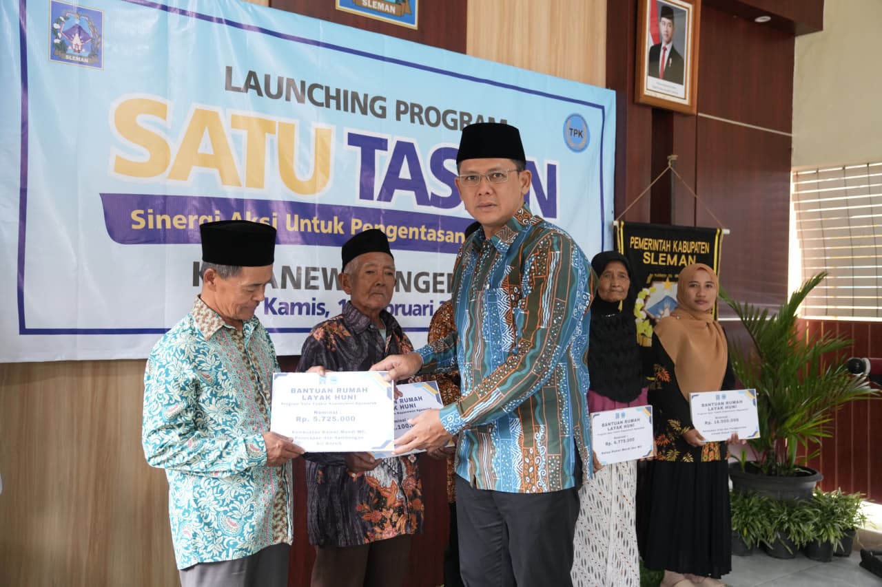 Spektroom - Pemerintah Kabupaten Sleman meluncurkan program Satu Taskin (Sinergi Aksi untuk Pengentasan Kemiskinan) sebagai upaya percepatan penurunan angka kemiskinan. Program yang diinisiasi Tim Penanggulangan Kemiskinan (TPK) Kapanewon Ngemplak ini diluncurkan oleh Wakil Bupati Sleman Danang Maharsa di Kantor Kapanewon Ngemplak, Kamis (19/2/2026).