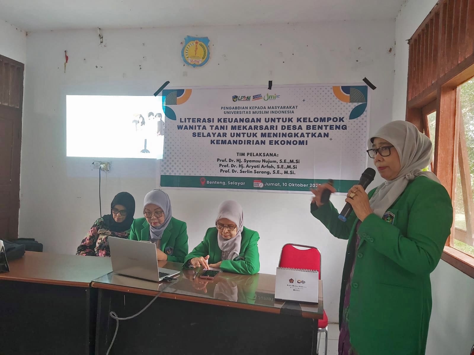 Spektroom - Kegiatan Pengabdian Kepada Masyarakat PKM dari Lembaga Pengabdian Kepada Masyarakat LPKM UMI Makassar telah dilakukan di Benteng Selayar dengan sasaran Kelompok Wanita Tani Mekar Sari sebagai Mitra PKM. Tim PKM dari FEB UMI Makassar di ketuai Prof. Dr. Syamsu Nujum, anggota Prof. Dr. Serlin Serang dan Prof. Dr. Aryati melakukan penyuluhan hari Jumat 10 Oktober 2025, mengangkat topik literasi keuangan bagi kelompok wanita tani untuk meningkatkan kemandirian ekonomi.