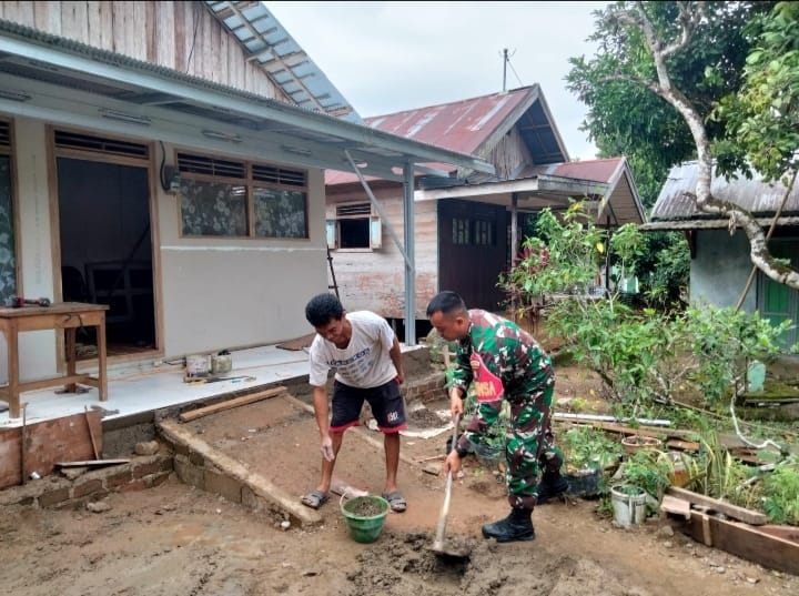 Spektroom – Babinsa Koramil 1002-02/Batang Alai Utara Kopda Rahmad Hidayat melaksanakan kegiatan membantu memperbaiki rumah warga binaan di Desa Kabang, Kecamatan Limpasu, Kabupaten Hulu Sungai Tengah, HST, Kalsel, Minggu (16/11/2025).