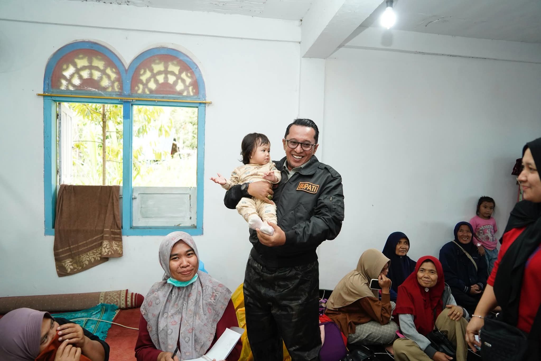 Spektroom - Bupati Tanah Datar Eka Putra bersama Wabup Ahmad Fadly kembali mengunjungi masyarakat Nagari Padang Malalo yang dievakuasi melalui jalur danau Sinhkarak menggunakan boat dan kapal ke Posko Pengungsian di Tanjung Mutiara, Nagari Batu Taba, Kecamatan Batipuh Selatan, Jum'at (28/11/2025).
