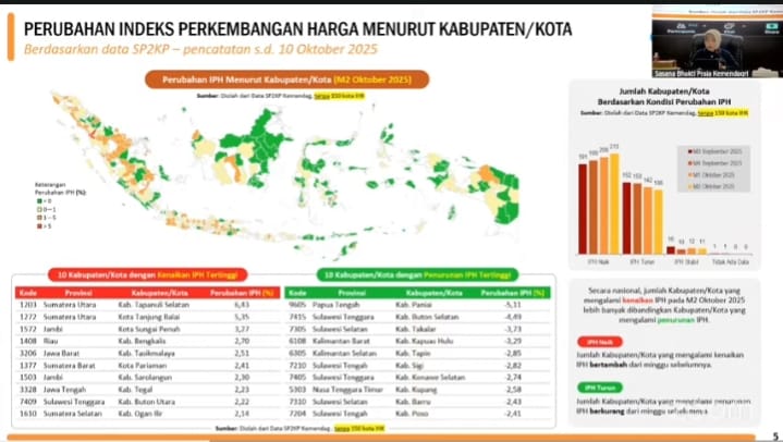 Diforum yang sama Kepala Badan Pusat Statistik (BPS) Amalia Adininggar Widyasanti menerangkan untuk IPH minggu kedua bulan Oktober 2025, dibanding bulan sebelumnya ada 17 provinsi mengalami kenaikan IPH sementara 21 provinsi mengalami penurunan.