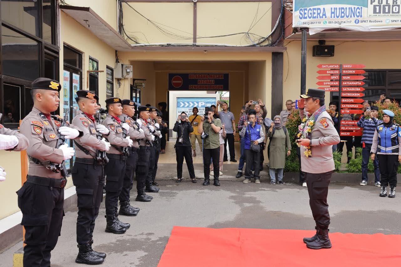 Setelah prosesi tersebut, Kapolda kemudian disambut jajar hormat oleh personel Satsamapta Polres Gowa, menandai penghormatan resmi terhadap kedatangan pimpinan tertinggi Polda Sulsel.