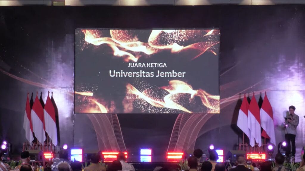 Spektroom – Pengakuan terhadap Universitas Jember tentang kiprahnya dalam pengabdian kepada masyarakat semakin jelas dan tegas. Hal ini dibuktikan Universitas Jember (UNEJ) setelah mendapatkan apresiasi di tingkat nasional dengan diraihnya predikat juara tiga Mandaya Award 2025 kategori Perguruan Tinggi Negeri (PTN), dari Kementerian Koordinasi Pemberdayaan Masyarakat (Kemenko PM).