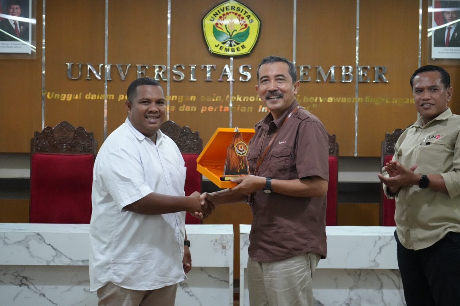 Kegiatan di Gedung Rektorat UNEJ ini berfokus pada diskusi mendalam mengenai pengelolaan bidang kemahasiswaan dan pengembangan minat bakat mahasiswa. Rombongan yang dikomandoi oleh Marcelino, Bagian Kemahasiswaan Universitas Musamus diterima langsung oleh perwakilan pimpinan dan staf di lingkungan Rektorat UNEJ.