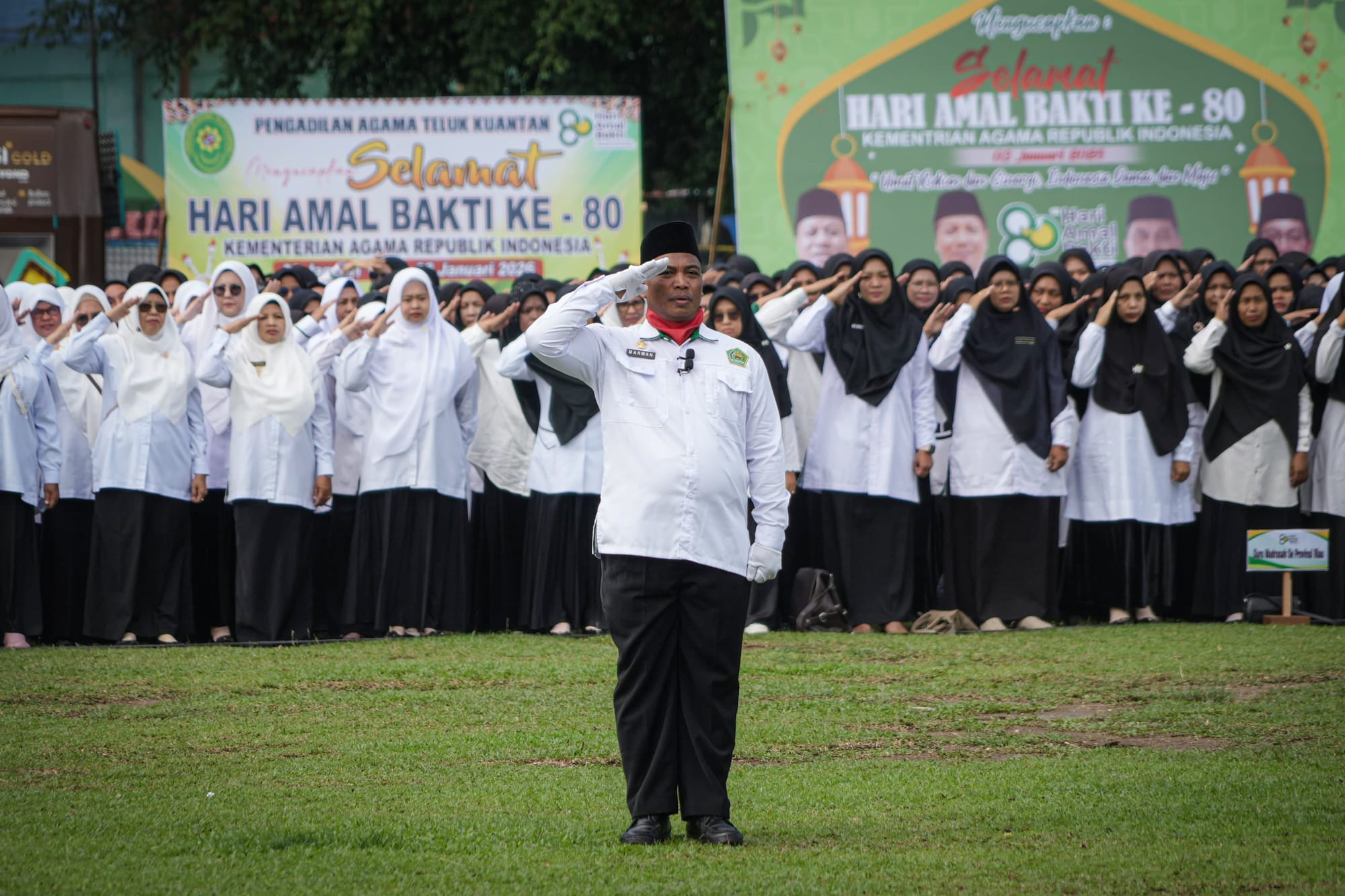 Spektroom - Bupati Kuantan Singingi, Dr H Suhardiman Amby menjadi Inspektur Upacara pada Puncak Peringatan Hari Amal Bakti (HAB) Kementerian Agama ke 80 tingkat Provinsi Riau, yang berlangsung di Lapangan Limuno Teluk Kuantan, Sabtu pagi (3/1/2026).